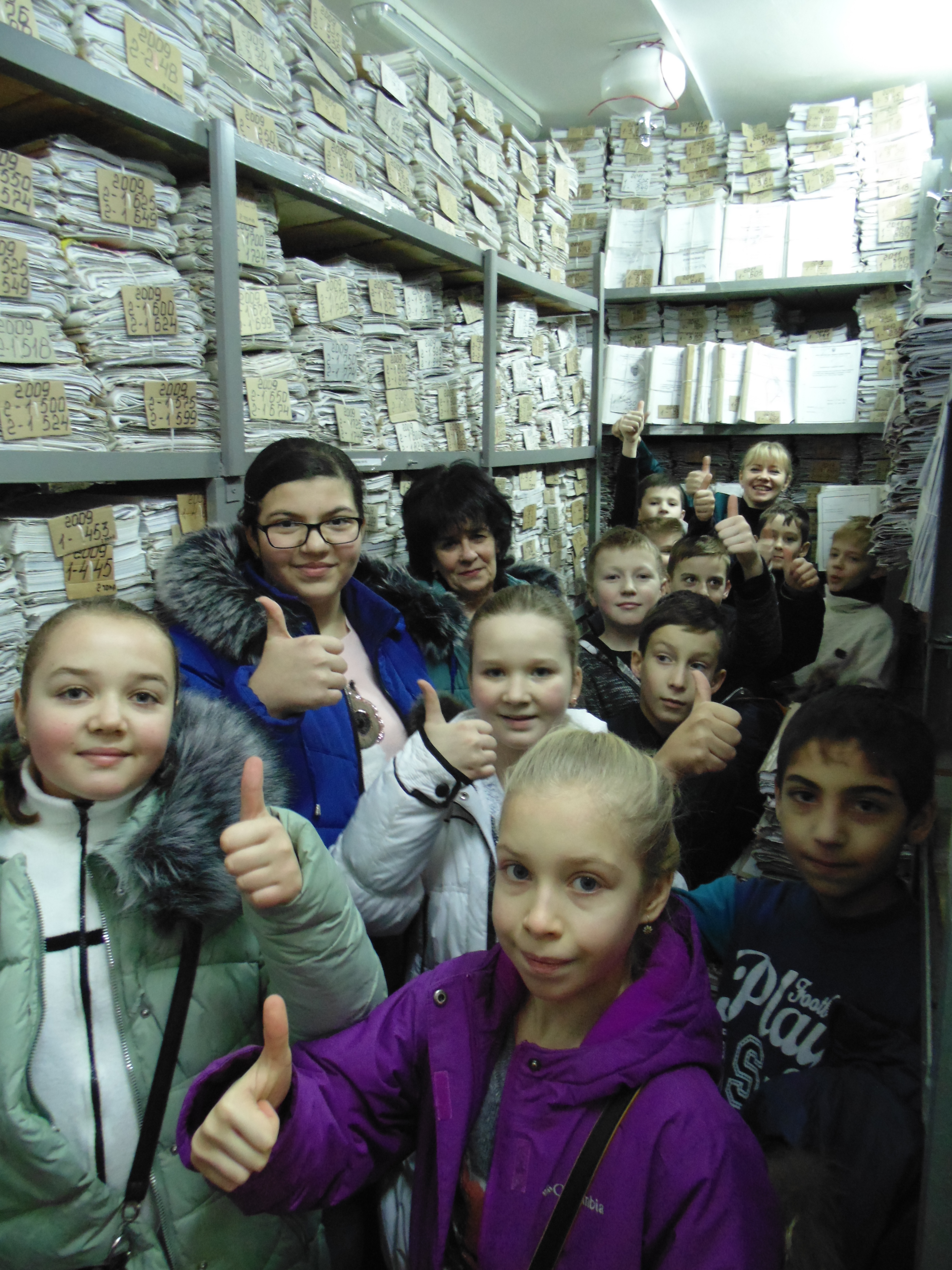 Зустріла учнів керівник апарату суду Алла Шевченко, яка провела коротеньку екскурсію приміщенням суду. Разом із керівником апарату суду діти відвідали архів суду та мали змогу побачити як зберігаються справи. Після цього Алла Шевченко показала як працює «великий комп’ютер» - інформаційний кіоск, що розміщений на 3 поверсі приміщення суду.