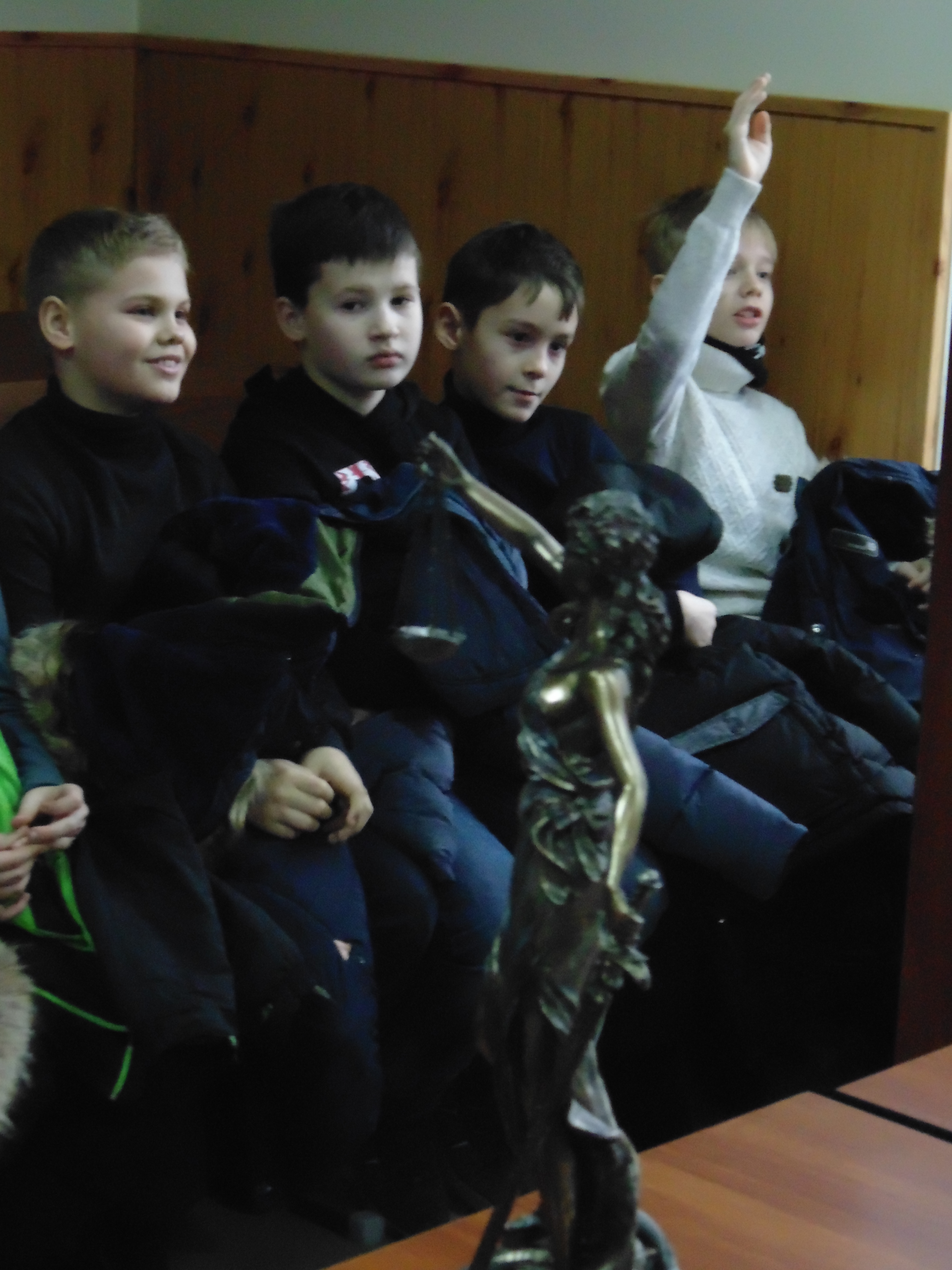 Потім юних відвідувачів було запрошено до зали судових засідань, де керівник апарату Алла Шевченко коротко ознайомила присутніх з діяльністю суду, розповіла про кримінальну та адміністративну відповідальність неповнолітніх. Доступною мовою, на конкретних життєвих ситуаціях пояснила, які категорії справ розглядаються у Зарічному районному суді м. Суми. А також про можливість проведення судових засідань у режимі відеоконференції та направлення судових повісток у вигляді SMS-повідомлень. А на завершення свого виступу розповіла легенду про Феміду, як символ судочинства, та детально зупинилась на історії її походження.