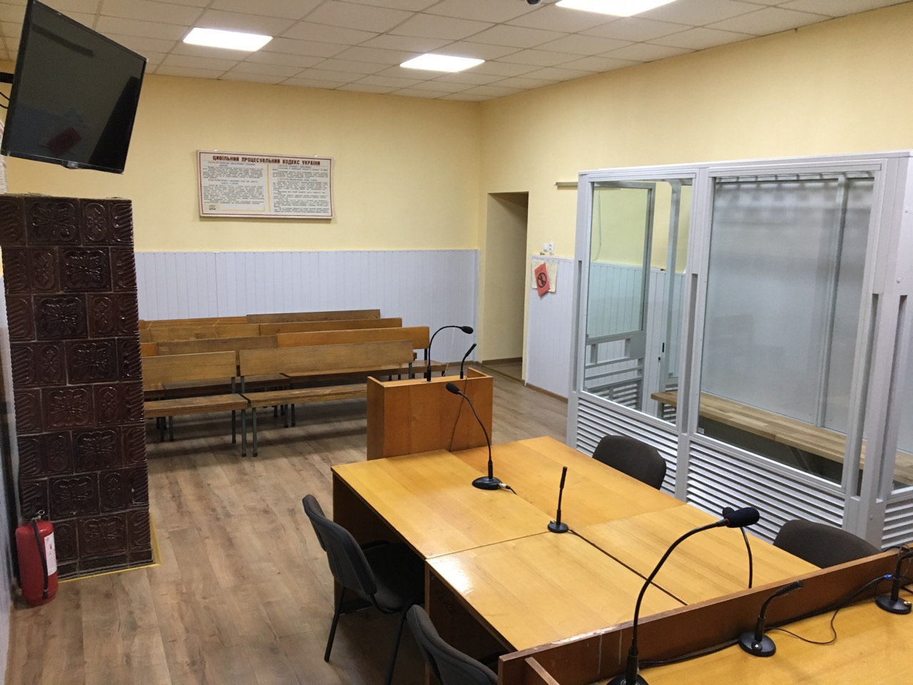 Також встановлено замість  залізних ґрат  нові кабіни для підсудних (засуджених) із захисним склінням, оскільки тримання підсудних  в металевій клітці порушує ст.3 Конвенції про захист прав людини і основоположних свобод.